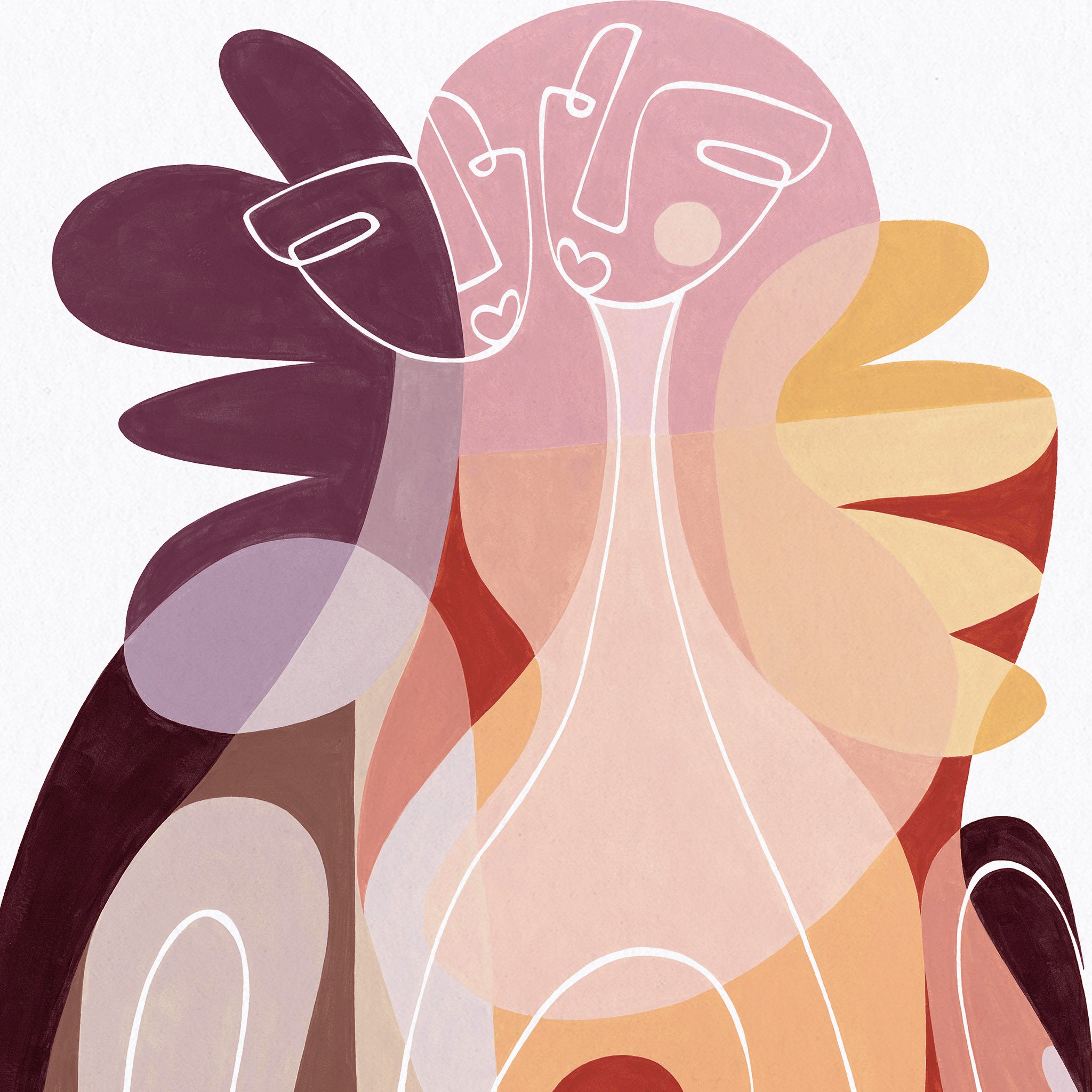 The contrasting light & dark colourings represent the yin and yang of one another, working together in perfect harmony, entwined in love. The white untouched paper lines represent the paths yet to be explored together, and the floral shapes are symbolic of blossoming in love.