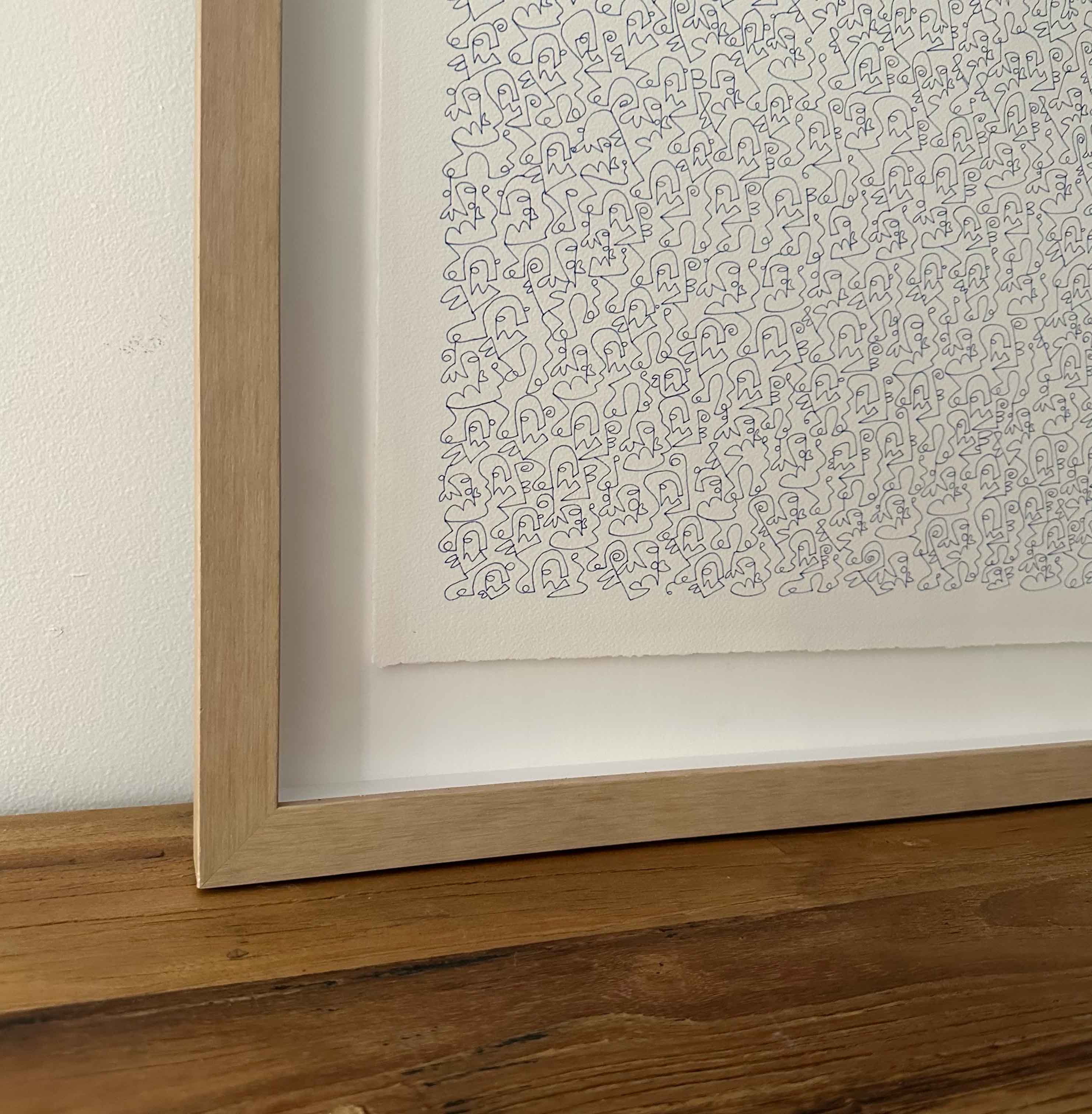 Acrylic on 300gsm, acid-free, archival quality, 100% cotton paper, mounted and float framed in Oak.