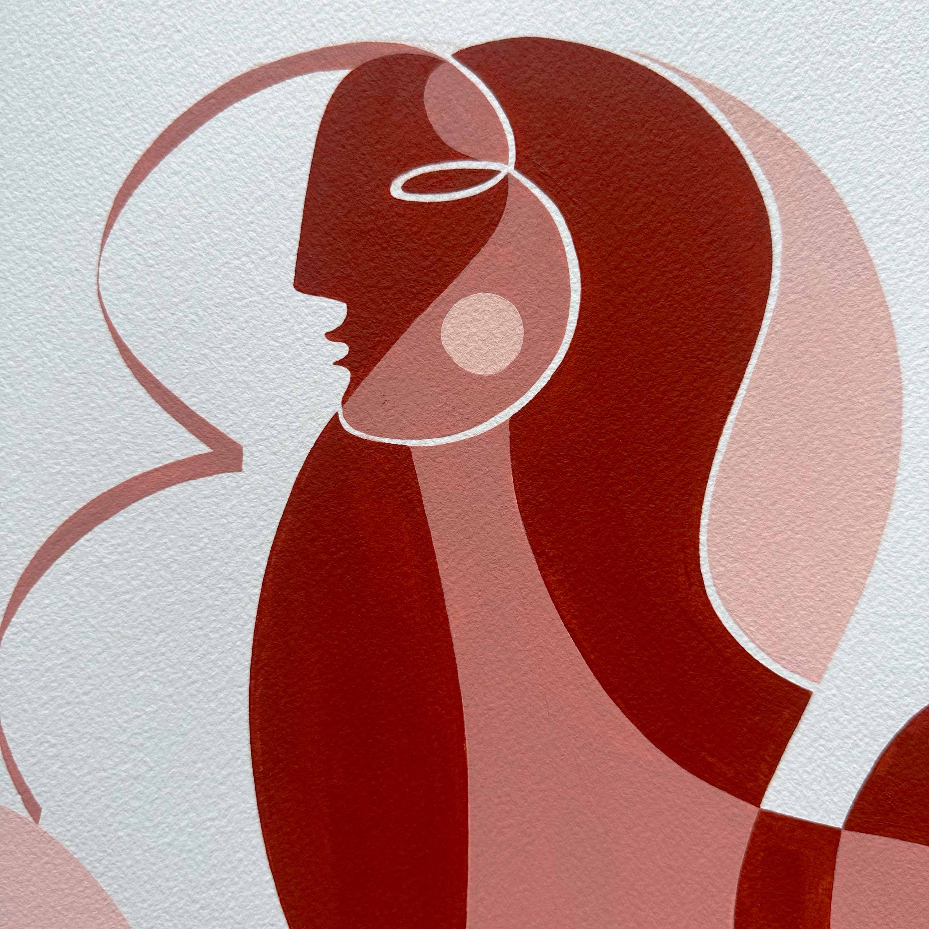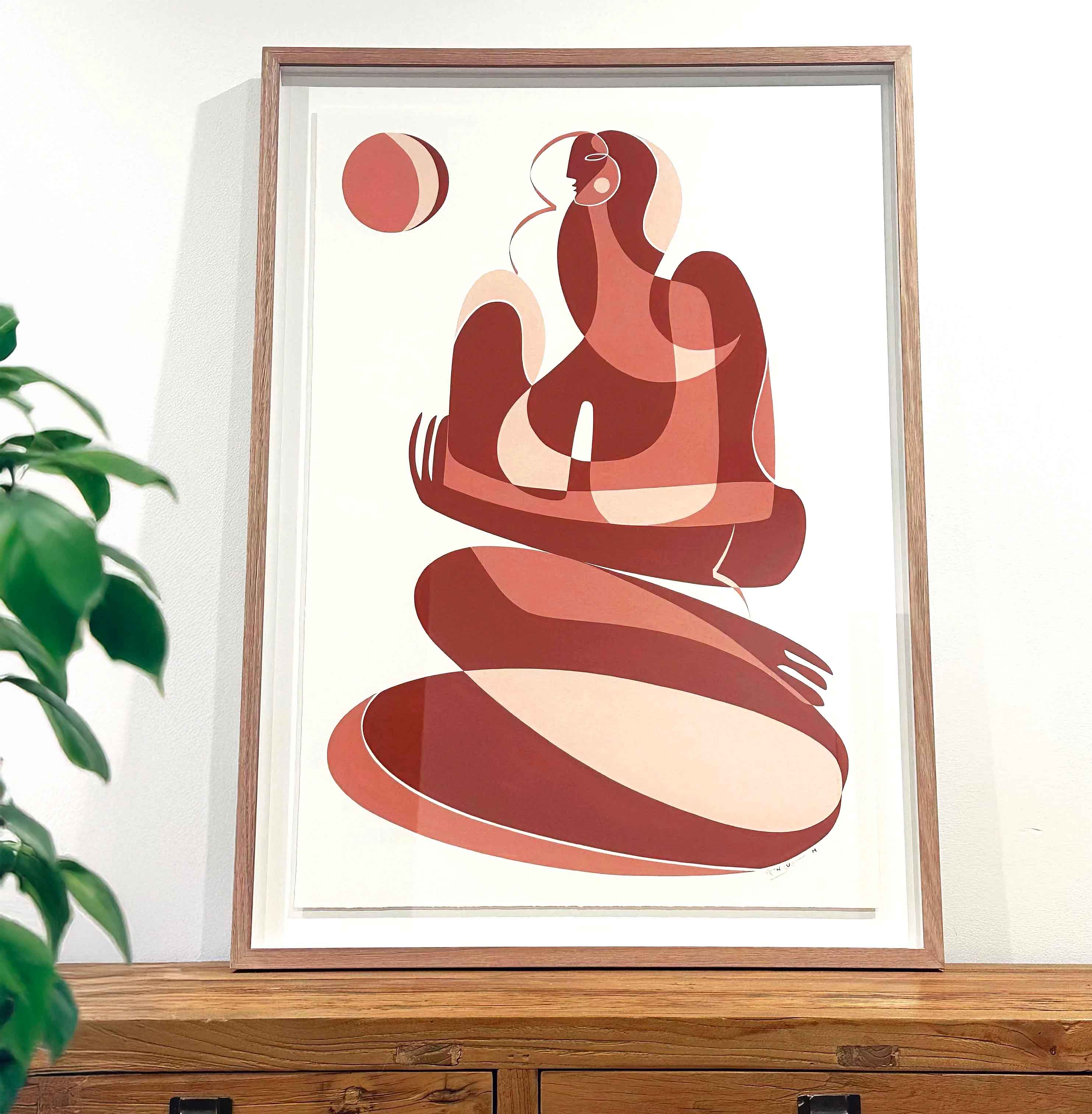 This piece speaks to quiet strength and radiant support, the feeling of being gently held by something greater. The sun in all its warmth and constancy becomes a symbol of inner light, resilience, and spiritual guidance. The mosaic style figure represents a self formed through many moments, broken, healed, and beautifully whole. The warm tones echo the energy of love, growth, and transformation, reminding us that even when we feel scattered we are never without light. To be held by the sun is to trust that we are seen, nurtured, and becoming, always unfolding toward the light.