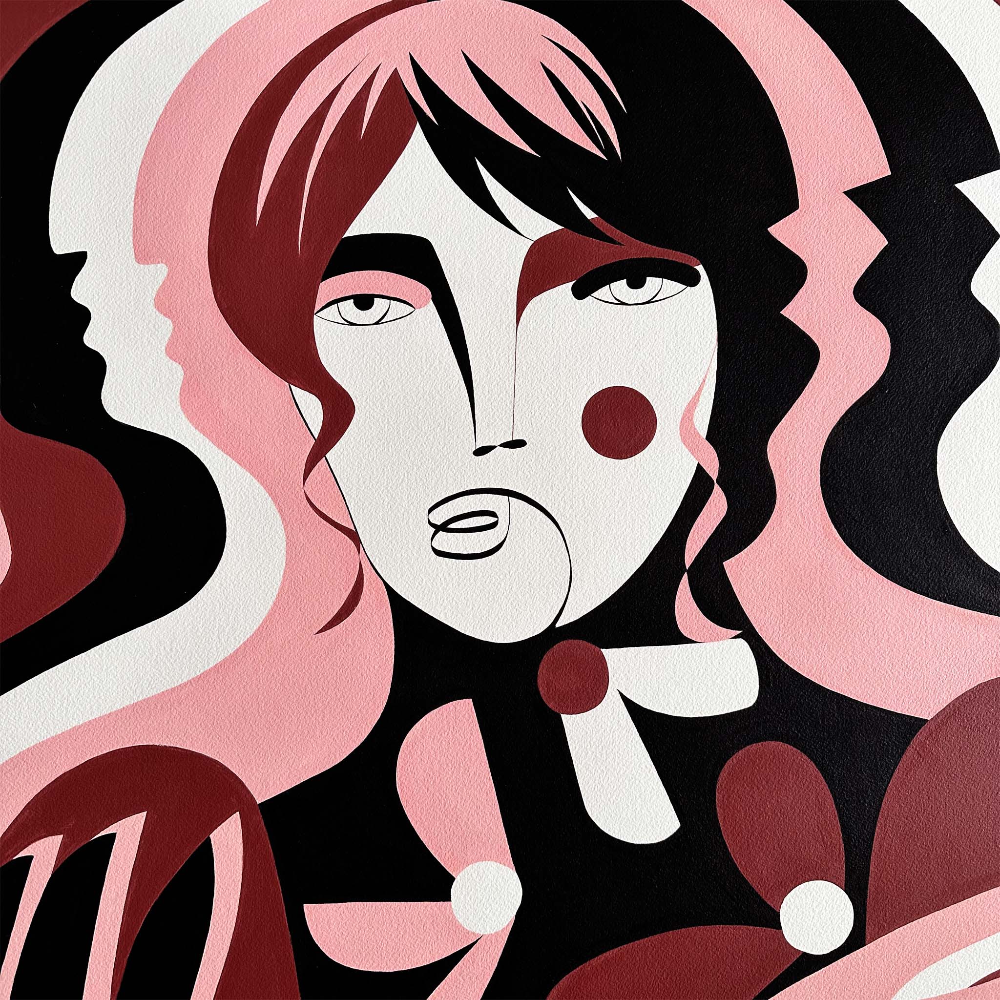Acrylic on 300gsm, acid-free, archival quality, 100% cotton paper, mounted and float framed in Oak.
