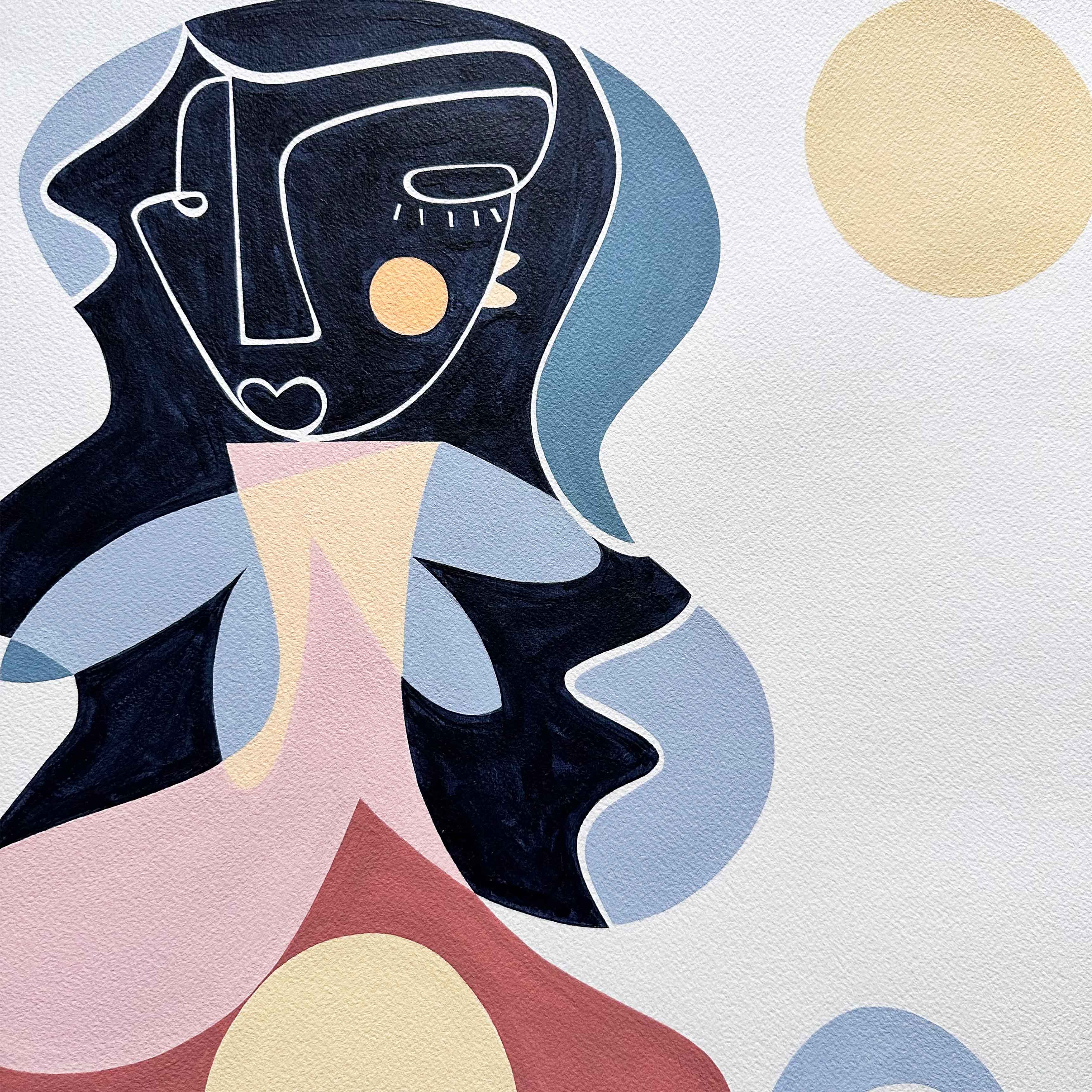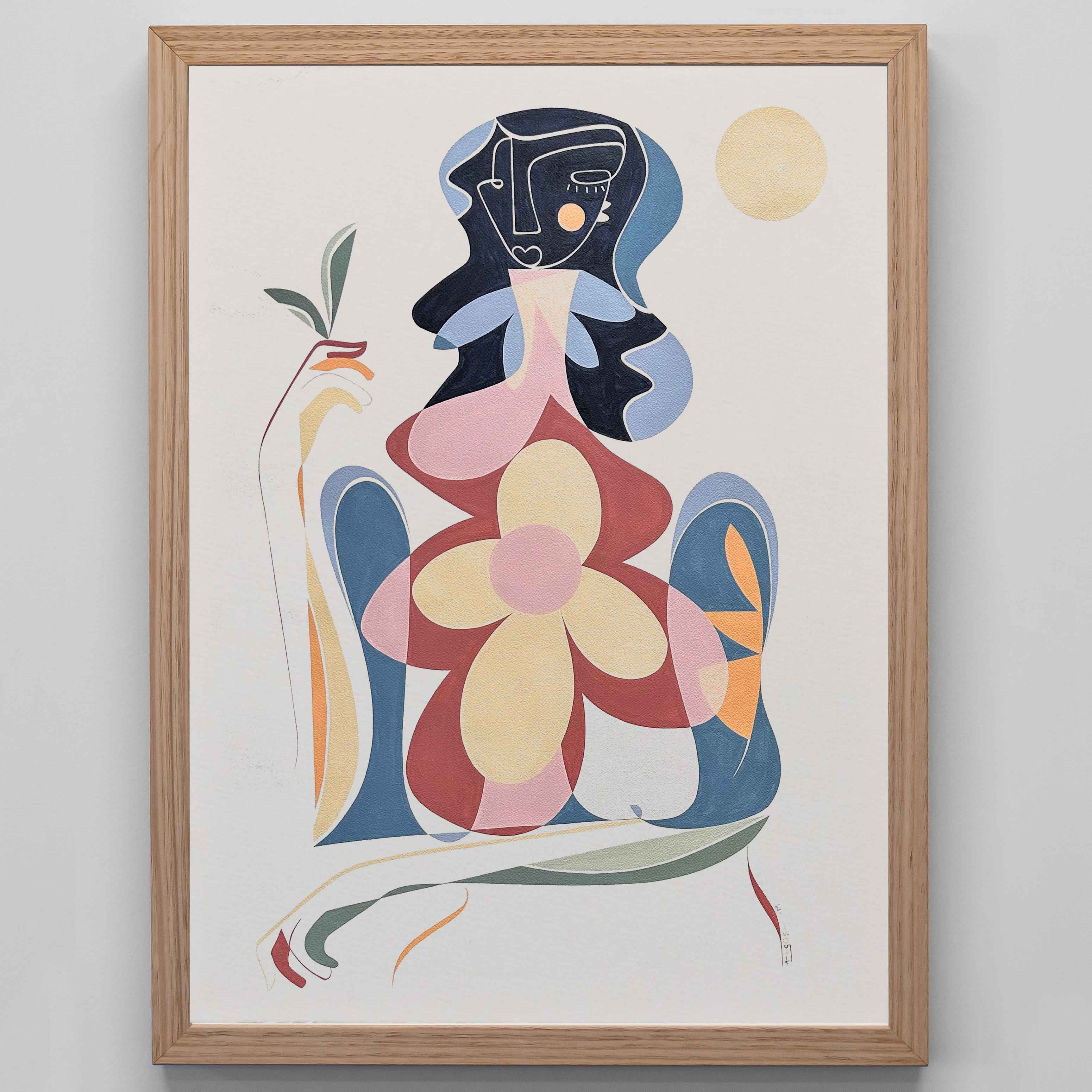 Acrylic on 300gsm, acid-free, archival quality, 100% cotton paper, mounted and float framed in Oak.