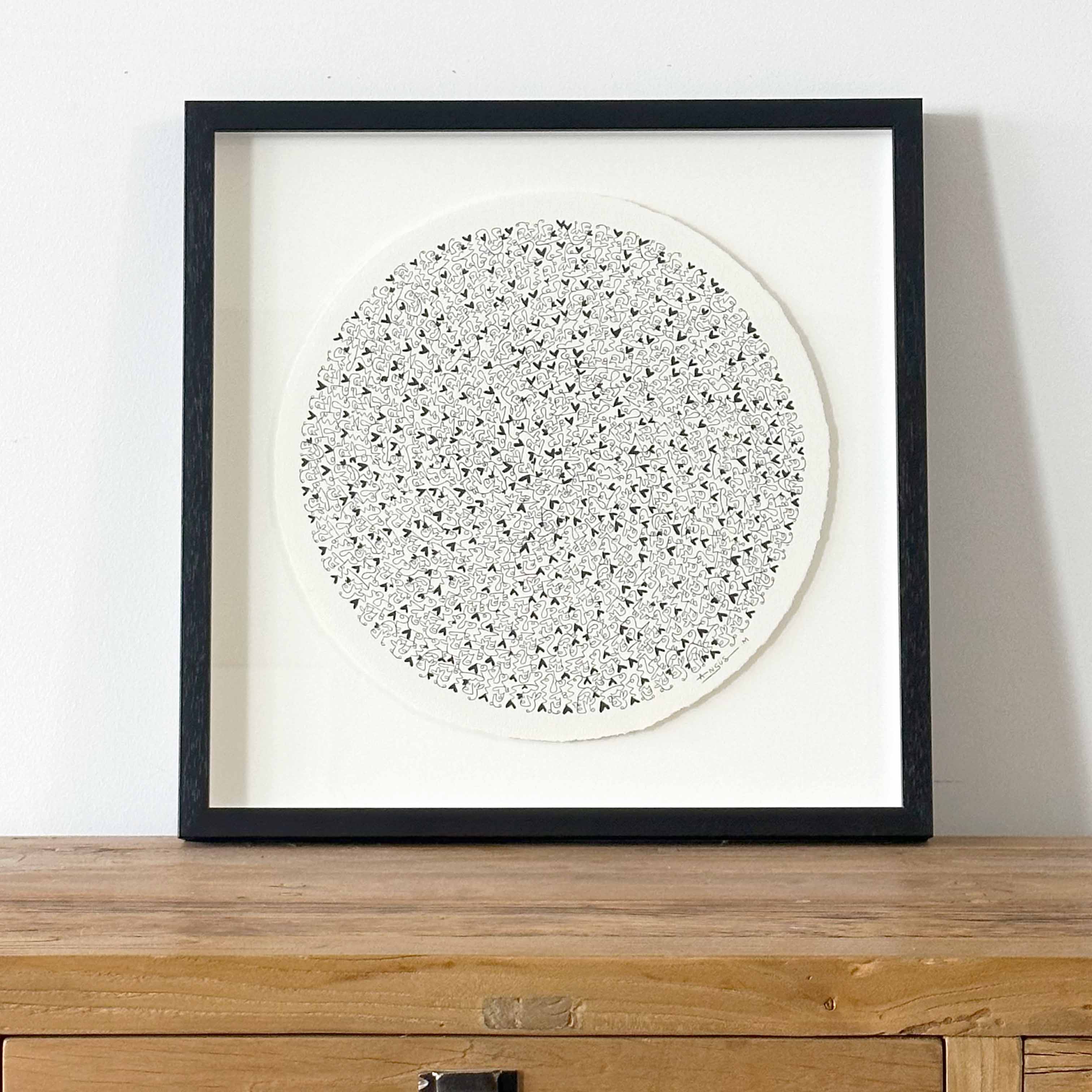 Acrylic on 300gsm, acid-free, archival quality, 100% cotton paper, mounted and float framed in Oak.
