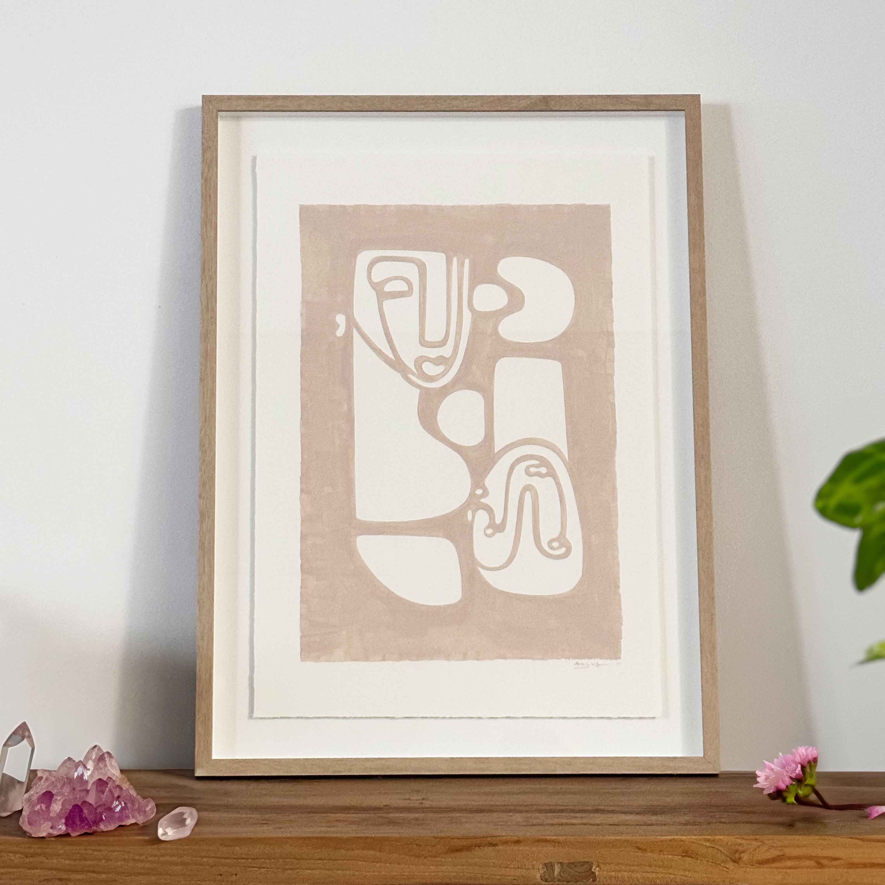 Acrylic on 300gsm, acid-free, archival quality, 100% cotton paper, mounted and float framed in Oak.