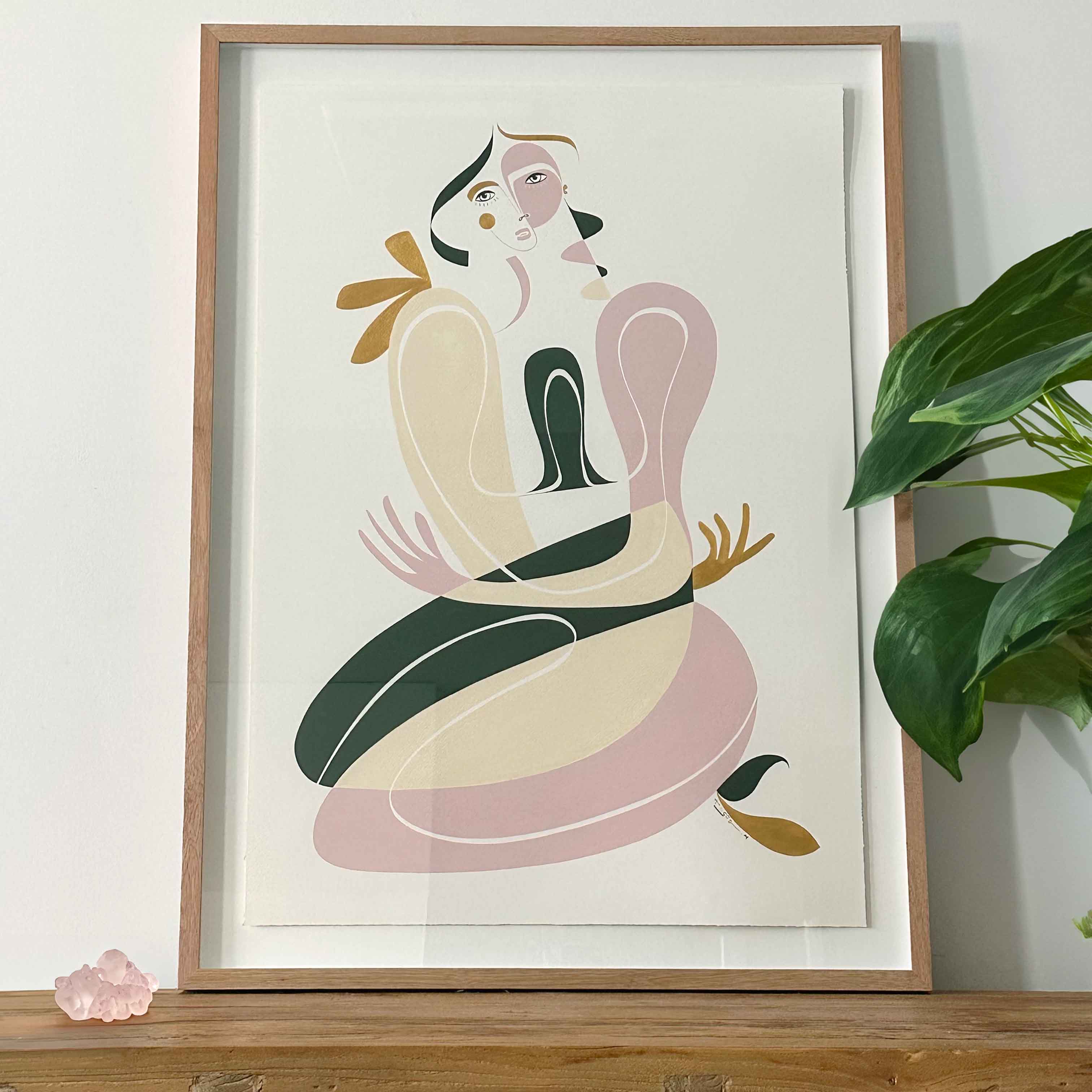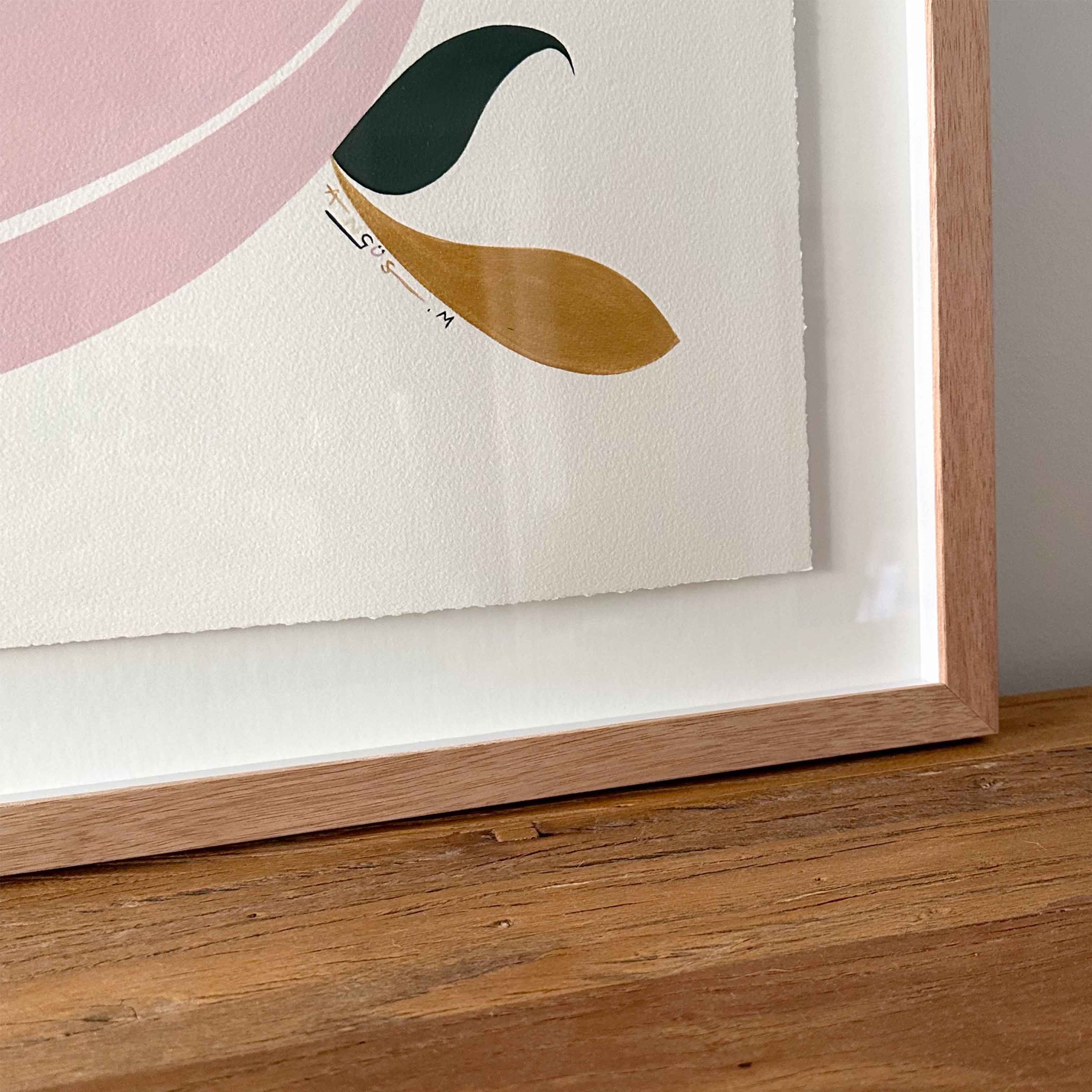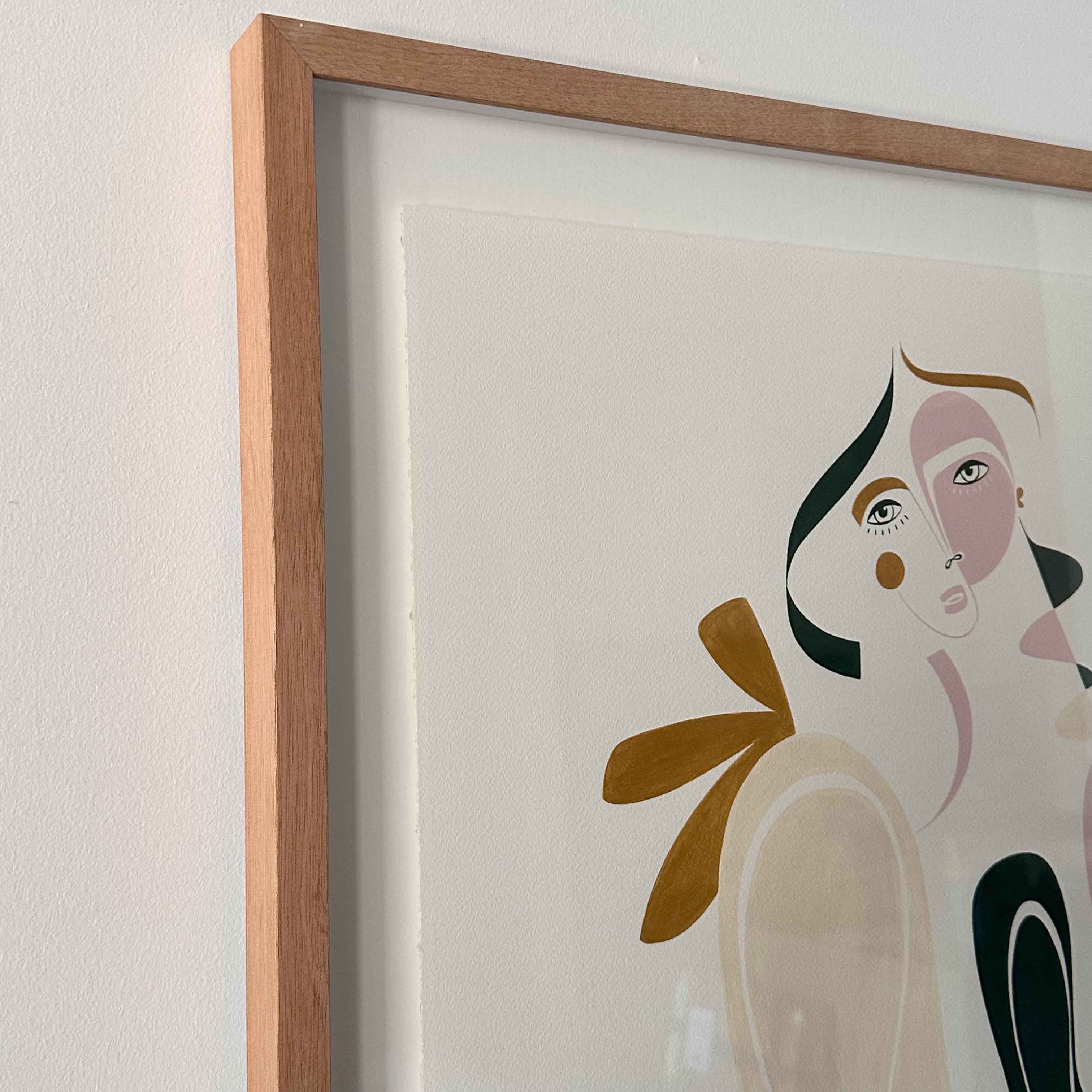 Acrylic on 300gsm, acid-free, archival quality, 100% cotton paper, mounted and float framed in Oak.
