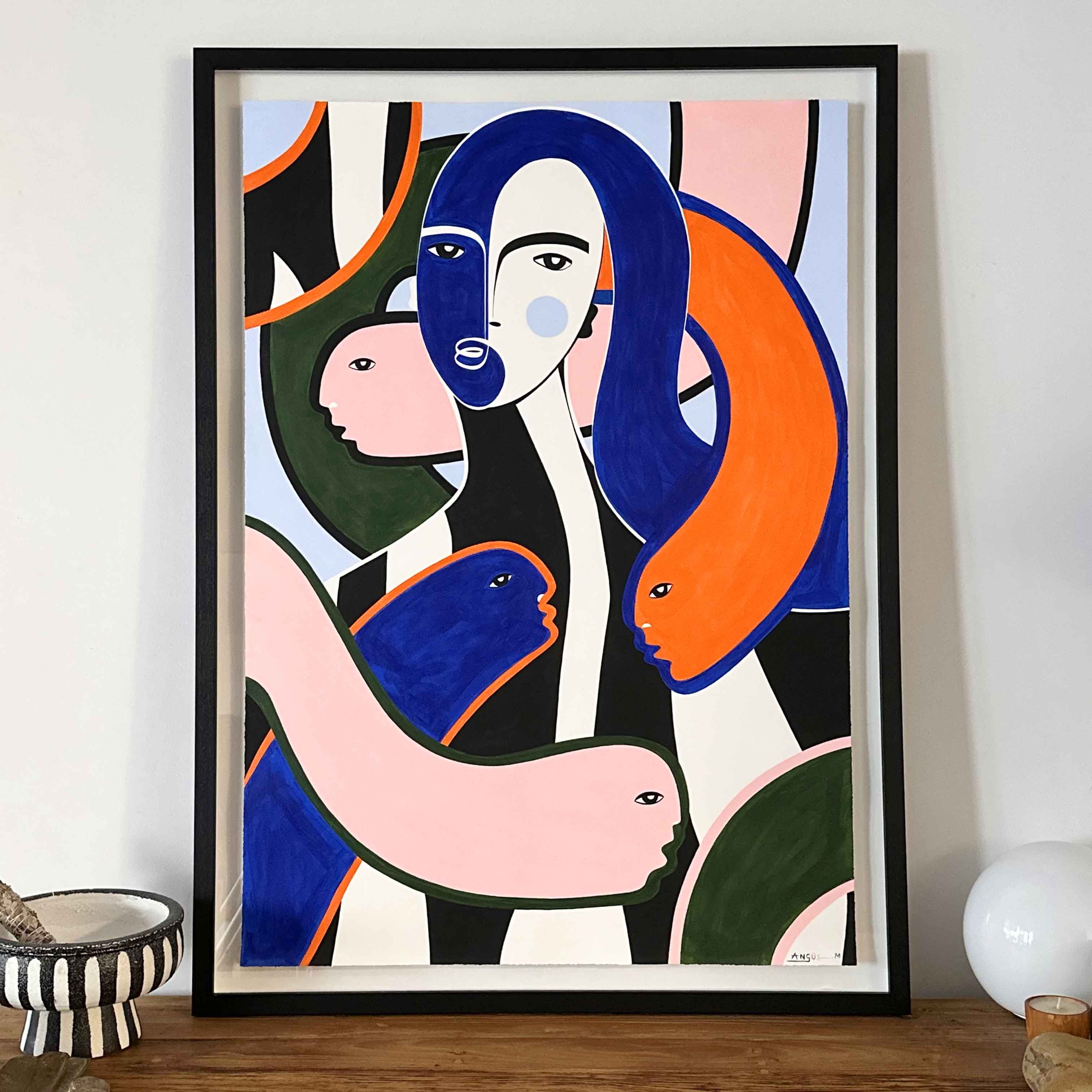 Acrylic on 300gsm, acid-free, archival quality, 100% cotton paper, mounted and float framed in Oak.